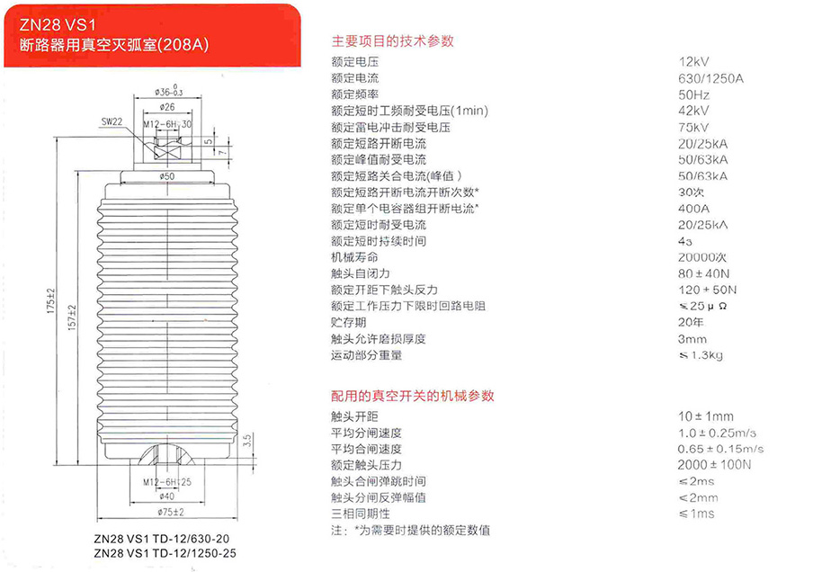 ZN28 VS1斷路器用真空滅弧室(208A)