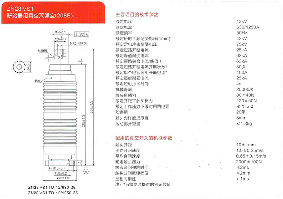 ZN28 VS1斷路器用真空滅弧室(208E)
