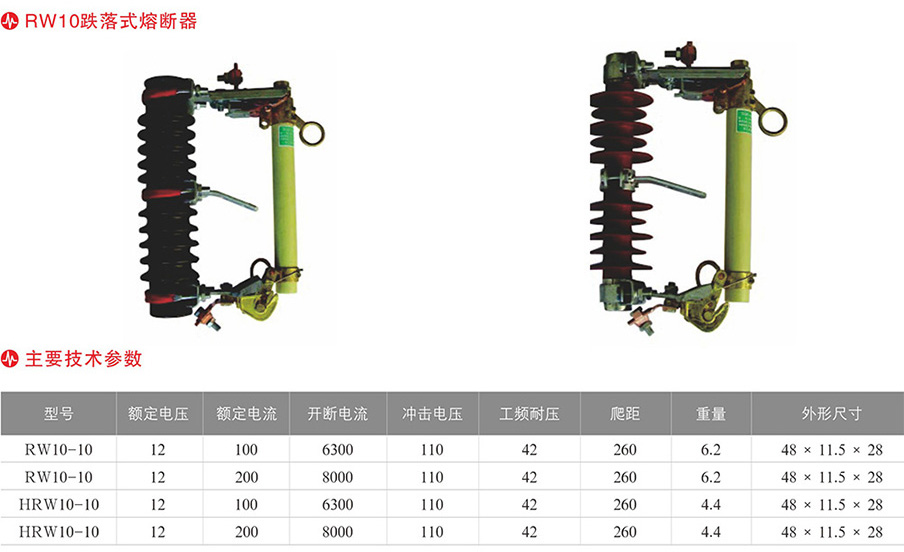 跌落式熔斷器及拉負荷跌落式熔斷器是戶外高壓保護電器。它裝置在配電變壓器高壓側(cè)或配電線支干線路上、用作變壓器和線路的短路、過載保護及分、合負荷電流。跌落式熔斷器由絕緣支架和熔絲管二部分組成,靜觸頭安裝在絕緣支架兩端,動觸頭安裝在熔絲管兩端,熔絲管由內(nèi)層的消弧管和外層的酚醛紙管或環(huán)氧玻璃布管組成。拉負荷跌落式熔斷器增強彈性輔助觸頭及滅弧罩,用以分,合負荷電流。