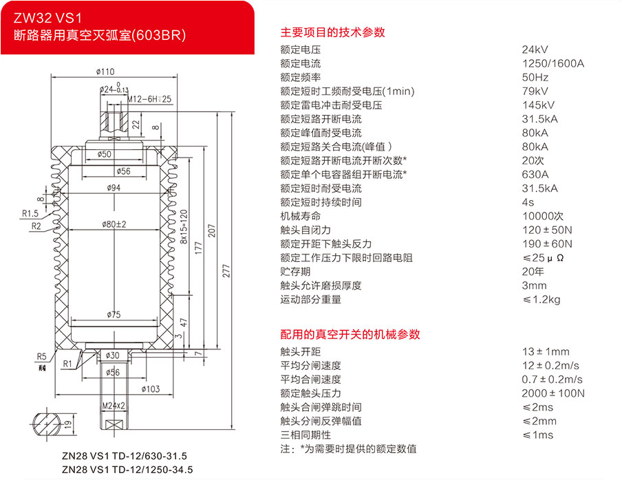 24KV斷路器用真空滅弧室(603BAR)