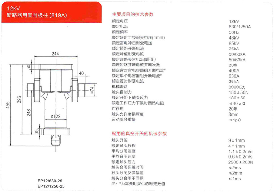 12kV斷路器用固封極柱(819A)
