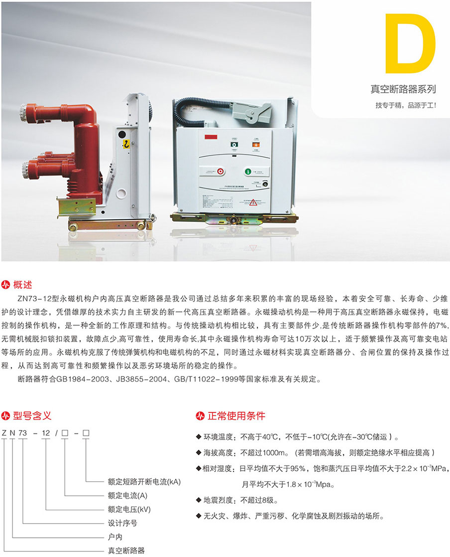 ZN73A-12永磁式/固封極柱式戶內(nèi)高壓真空斷路器