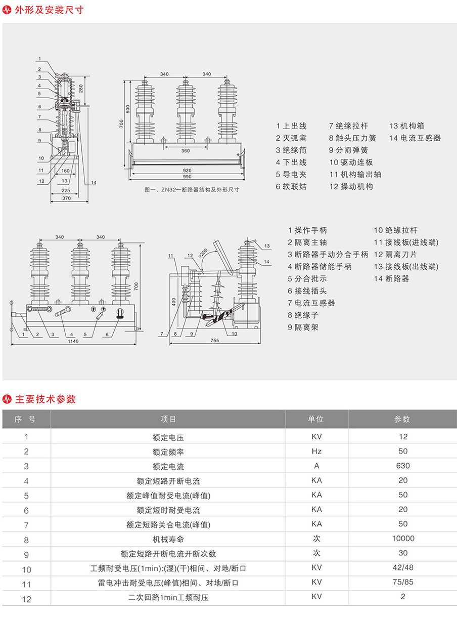 FZW32-12/T630-20型戶外高壓隔離真空負(fù)荷開關(guān)